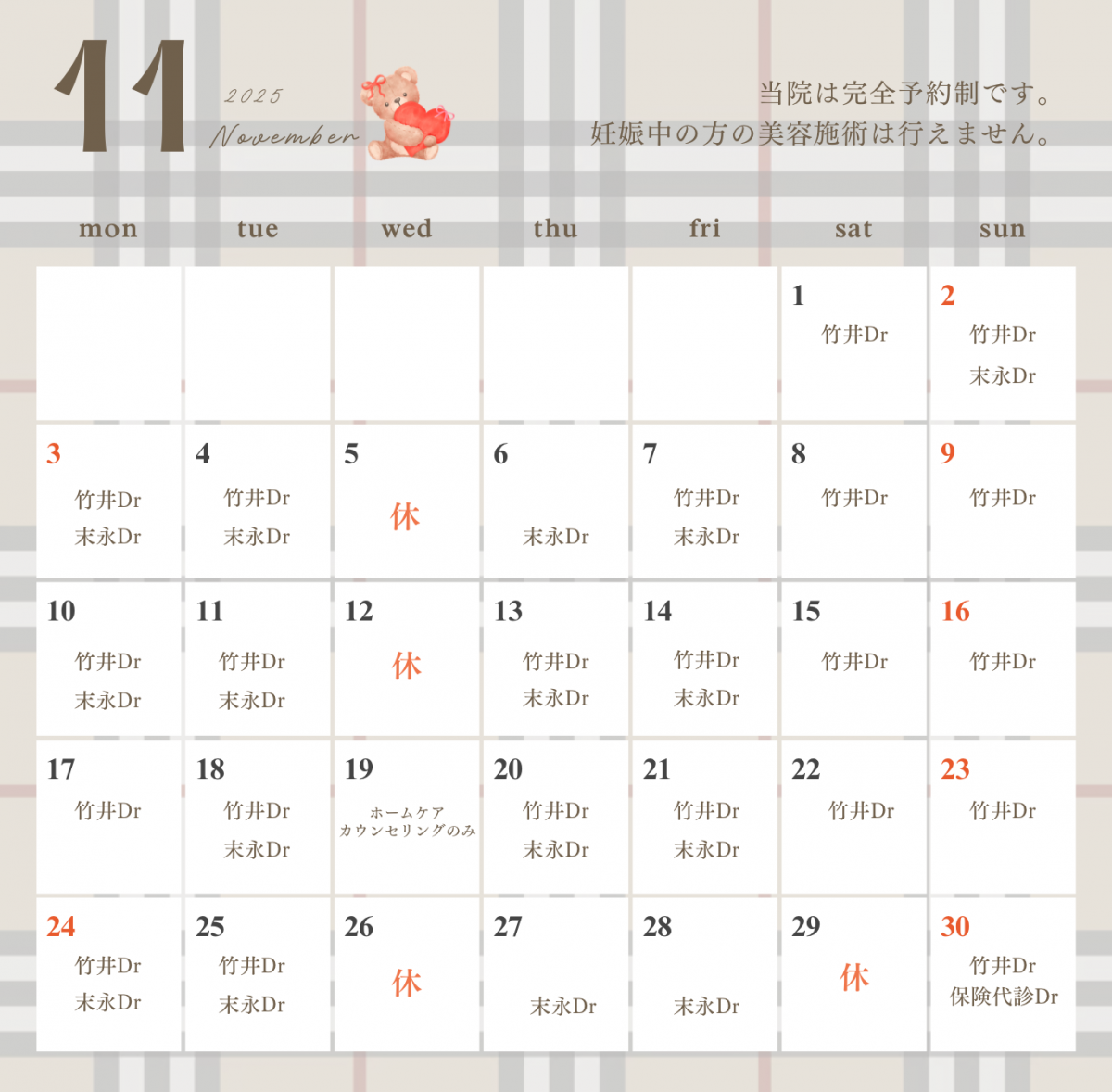 ご自身の予約内容(保険診療、美容診療)にお間違いのないよう